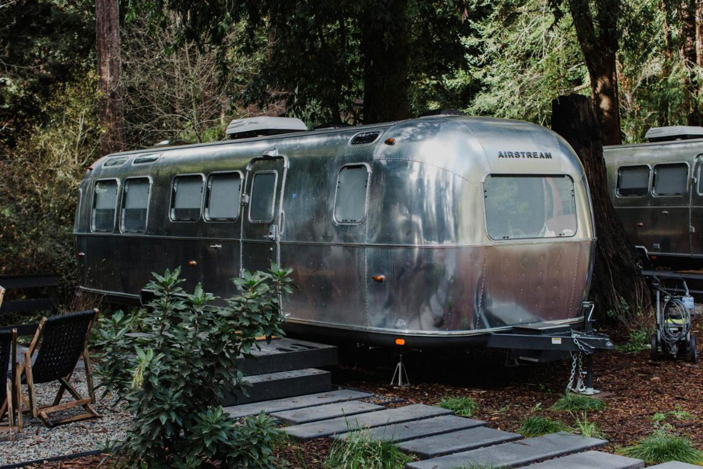 A chic glamping retreat near Guerneville featuring stylish Airstreams and luxury tents, nestled in the redwoods with easy access to the Russian River and Sonoma wineries.