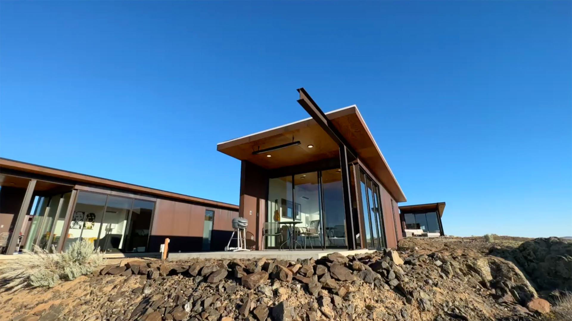 Olson Kundig-designed cabins on the Cave B Winery estate in Quincy, WA, offering wild valley views, minimalist architecture, and a perfect base for exploring wine country or seeing a show at the Gorge Amphitheatre.