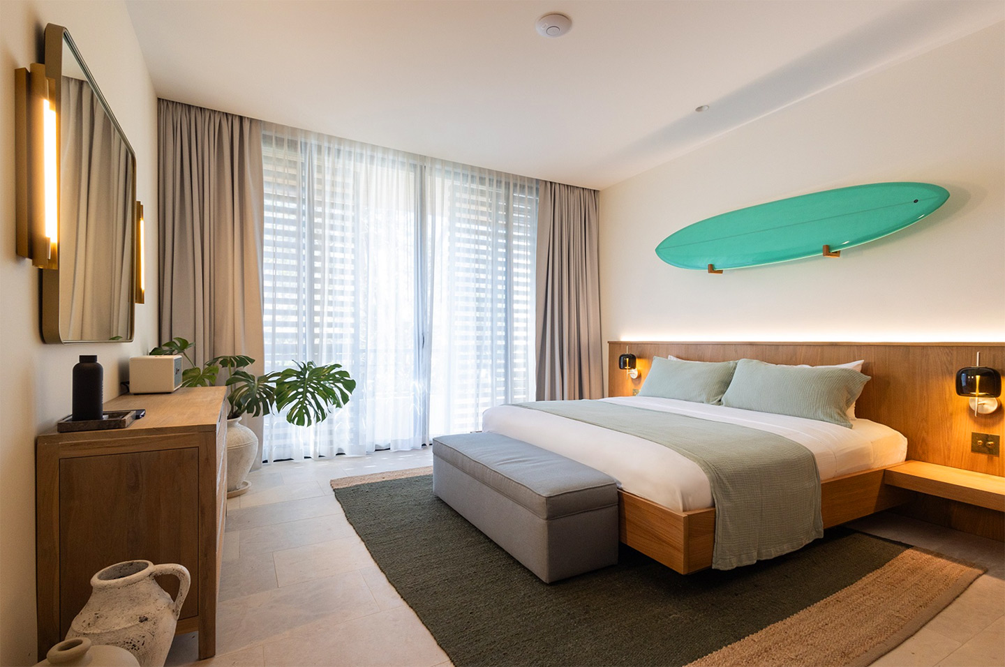 A chic nine-suite boutique hotel in Nosara, Costa Rica, combining luxe amenities with apartment-style living. Features a rooftop pool, yoga studio, surfboard rentals, and is a 2-minute walk from Playa Guiones