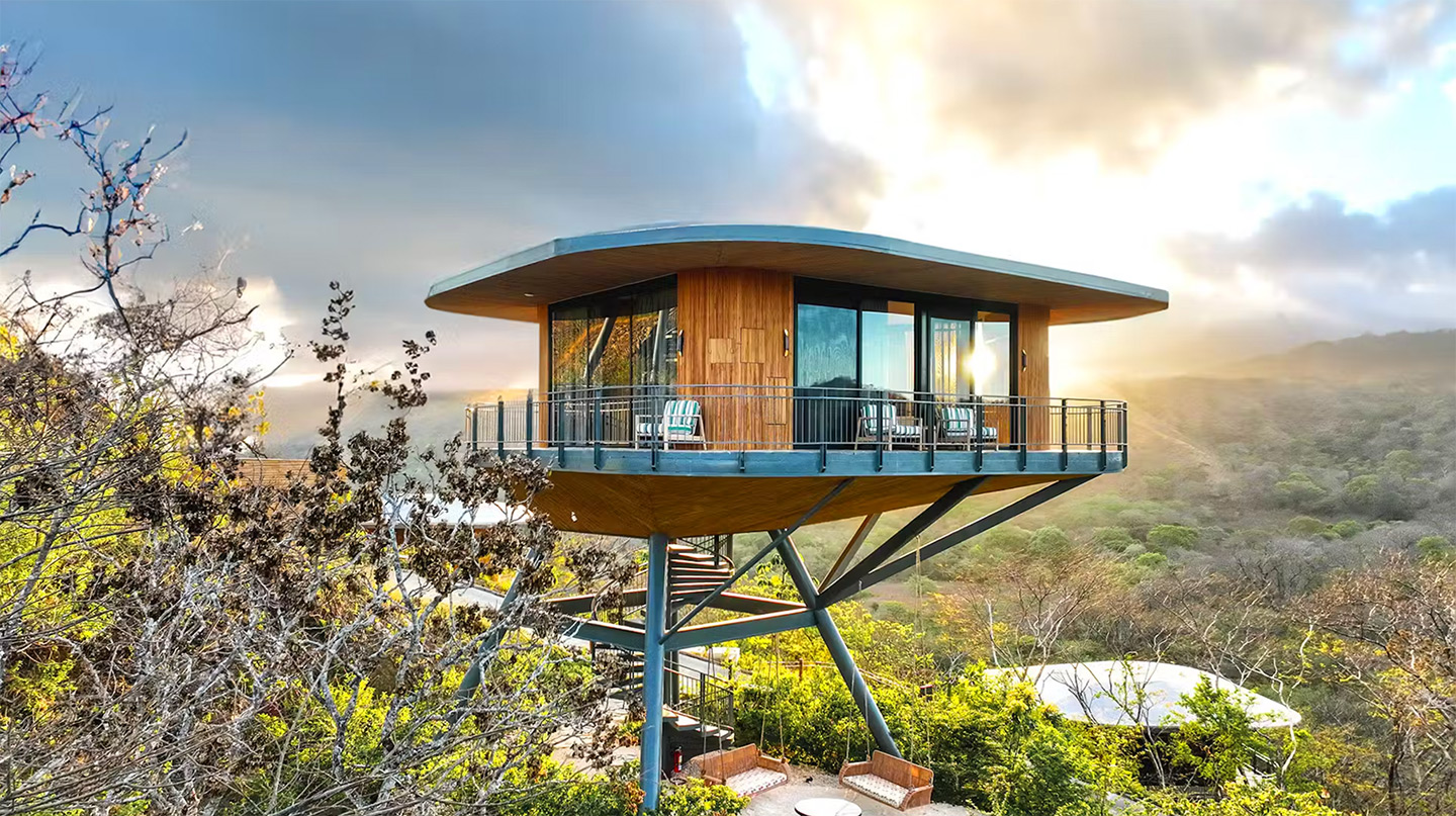 A boutique retreat near Sardinal, Guanacaste, designed by Studio Saxe. Features striking modern treehouses, two pools, a restaurant, and wild hilltop views. A design-centric escape for those seeking something unique.