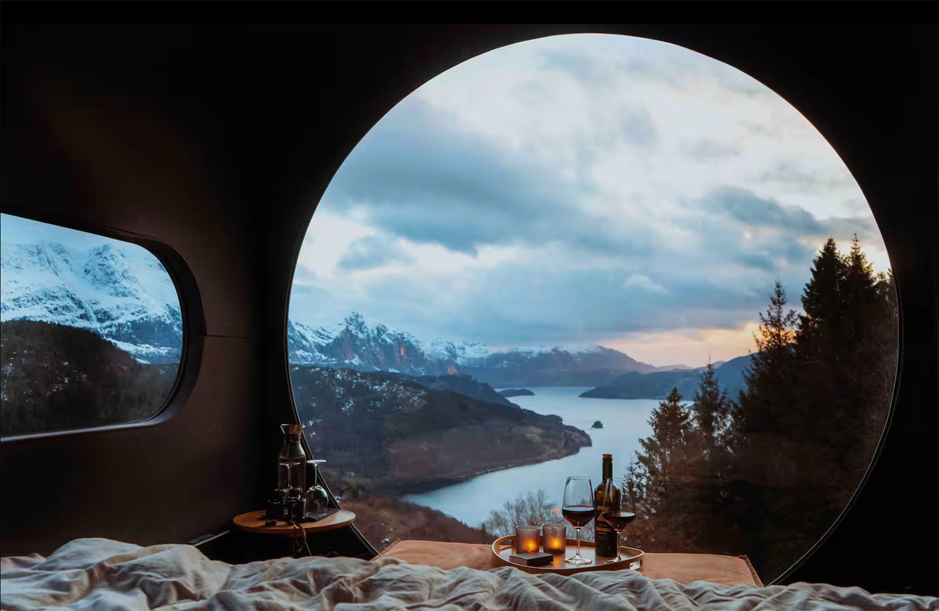 Welcome to the world's most scenic picnic spot. While there's no kitchen in your glass nest, the nearby barn offers minimalist meal prep essentials: cutting board, knife, and a sterno stove for hot beverage emergencies. Førde's grocery stores (18 minutes by car) stock everything you need for a mountaintop feast. Pro tip: Beer's available at grocery stores, but for wine and spirits, seek out Vinmonopolet. Local restaurants exist 18 minutes away in Førde, but trust us – you'll want to dine in with these views.